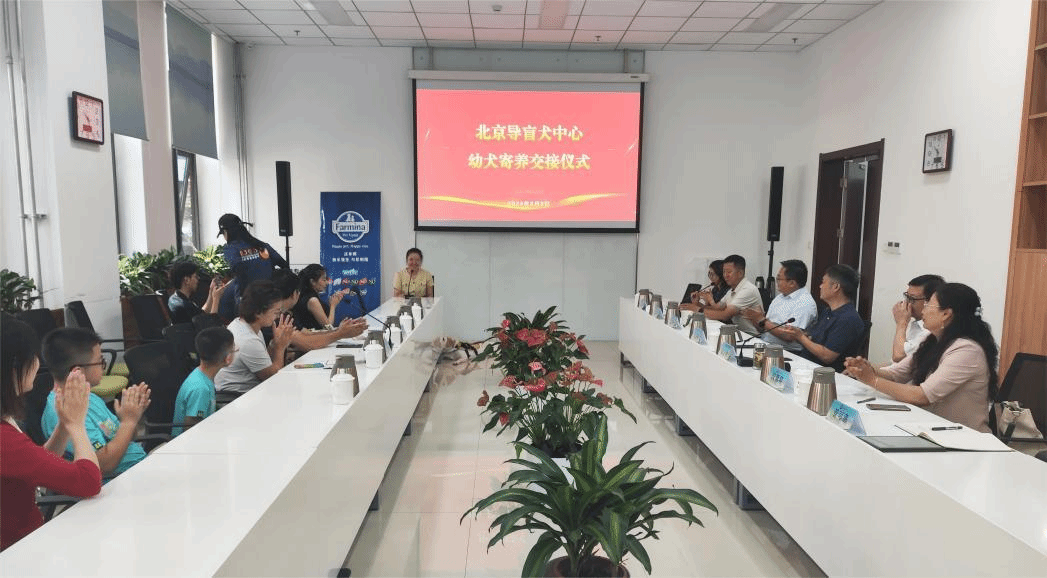 8月8日上午,北京导盲犬中心幼犬寄养交接仪式在世俱杯sjb官网科技综合楼C0107室拉开帷幕。世俱杯sjb官网党委常委、副院长张劲柏,北京市无障碍环境建设促进中心主任赵子龙,动科学院党委书记党登峰,动科学院导盲犬研究生专项班负责人段慧琴,寄养家庭志愿者赵旭东先生及家人、张业茹女士及家人,训导员代表,爱心企业代表,动科学院导盲犬基地实习学生、暑期在校学生等共计30余人见证了导盲犬幼犬多多和拉拉踏上导盲犬之旅的温馨时刻。动科学院副院长李国政主持仪式。