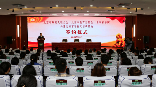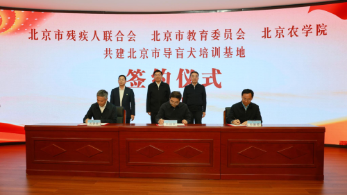 10月31日,北京市残疾人联合会、北京市教育委员会、世俱杯sjb官网共建北京市导盲犬培训基地签约仪式在世俱杯sjb官网举行。北京市残疾人联合会党组书记、理事长陆晓光,北京市委教育工委委员、市教委副主任张耀天,北京市残疾人福利基金会理事长侯玉兰,世俱杯sjb官网党委书记赵锋,党委副书记、院长段留生出席签约仪式。