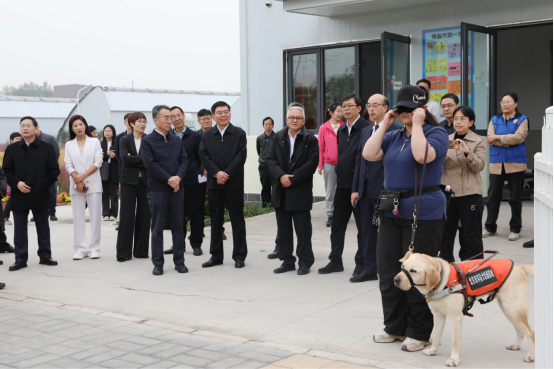 在训练场,马骏观看了导盲犬工作展示,深入了解导盲犬日常养护、训练,基地建设、运行情况,对学校发挥学科专业优势推动北京市导盲犬培训基地建设取得的进展给予充分肯定。