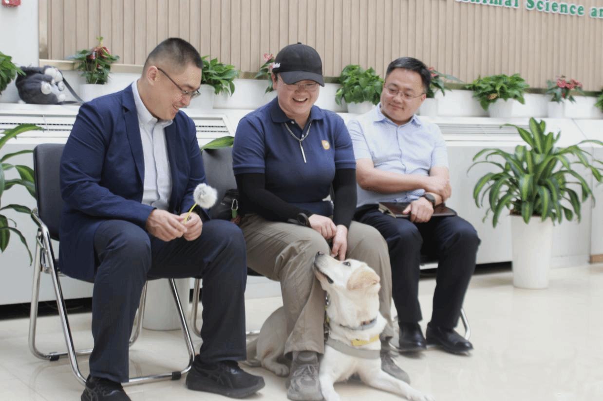 在导盲犬展示区,北京市导盲犬培训基地训导老师带来的导盲犬工作实况展示。