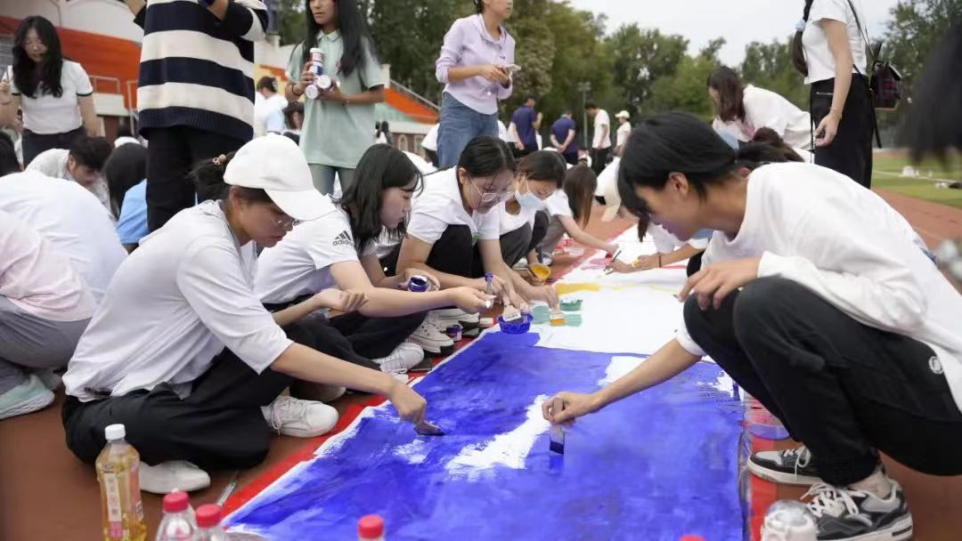 近日,为庆祝第六个“中国农民丰收节”和即将到来的“十一”国庆节,北农学子齐聚操场,用嘹亮的歌声、用彩笔描绘的巨幅画卷表达对祖国母亲74岁华诞的诚挚祝福、对“三农”事业蓬勃发展的坚定信心。在活动现场,同学们在一笔一划中勾画出浓浓的爱国的热忱,在一色一彩中描绘出满满的丰收喜悦。
