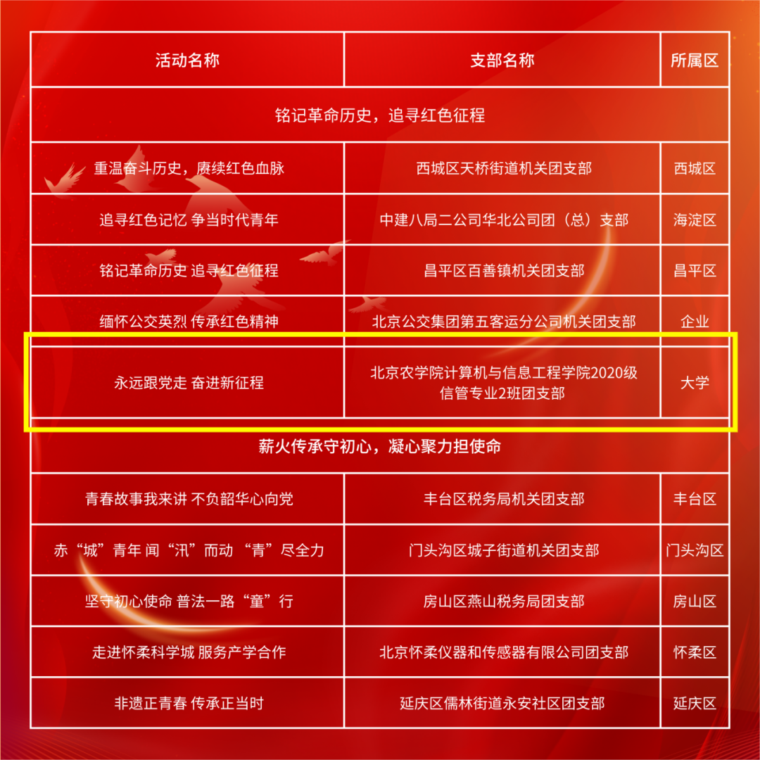 为深入学习贯彻党的二十大精神,以主题教育为契机,深化共青团组织改革和建设,增强团组织效能,激发团组织活力,团市委推出年度主题团日活动月历,并在全市范围内开展2023年“十佳主题团日活动”征集工作。世俱杯智能科学与工程学院2020级信管专业2班团支部开展的“永远跟党走 奋进新征程”主题团日活动,从全市近200个团支部主题团日活动案例中脱颖而出,获评“月度十佳主题团日活动”。