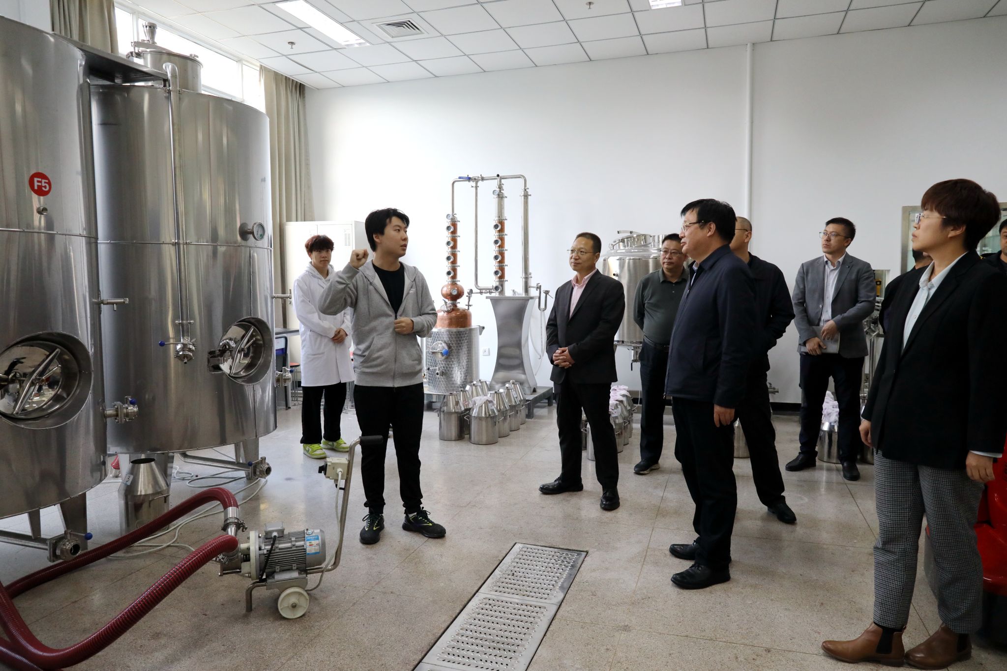 会后在张德强陪同下,张聪、崔忠一行参观了食品科学与工程学院实验室、智慧农业实验温室、国家大学科技园等。