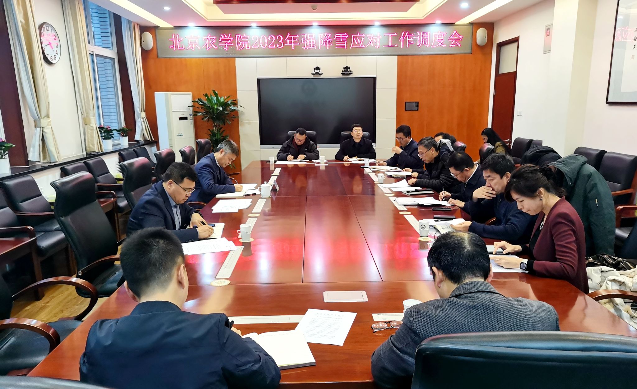 为全力做好强降雪应对工作,确保广大师生生命财产安全,按照党委部署和要求,12月13日下午,党委常委、副院长张劲柏主持召开学校强降雪应对工作专题会,传达市教委关于做好降雪应对工作的通知精神,对学校应对工作与应急保障工作进行部署。会议指出,本次强降雪天气过程中,北京暴雪和低温雨雪冰冻灾害风险高,全校各单位要高度重视,坚持人民至上、生命至上,树牢底线思维和极限思维,以“时时放心不下”的责任感,全力做好应对强降雪带来的不利影响和灾害。会议要求,要强化责任落实,加强统筹协调,确保各项安全防范工作落实到位;要迅速采取有效措施,及时做好扫雪除冰工作,确保校园主干道畅通;要加强风险预警研判,加强巡视巡查力度,及时消除各类安全隐患;要加强宣传引导,及时提醒师生注意防寒保暖、确保出行安全。