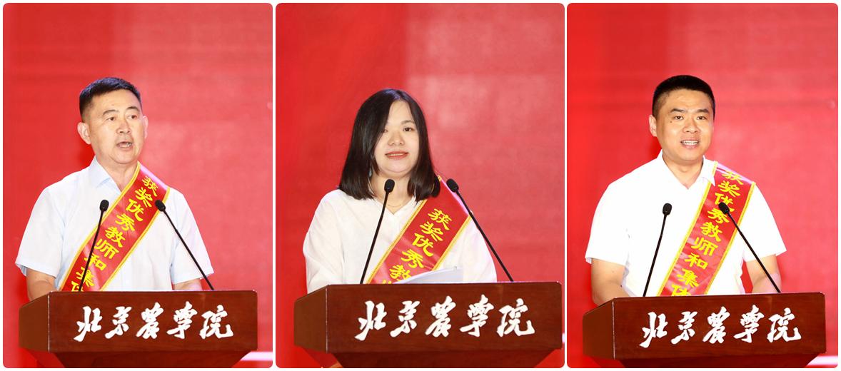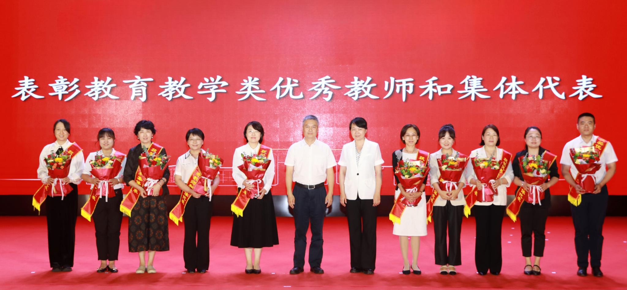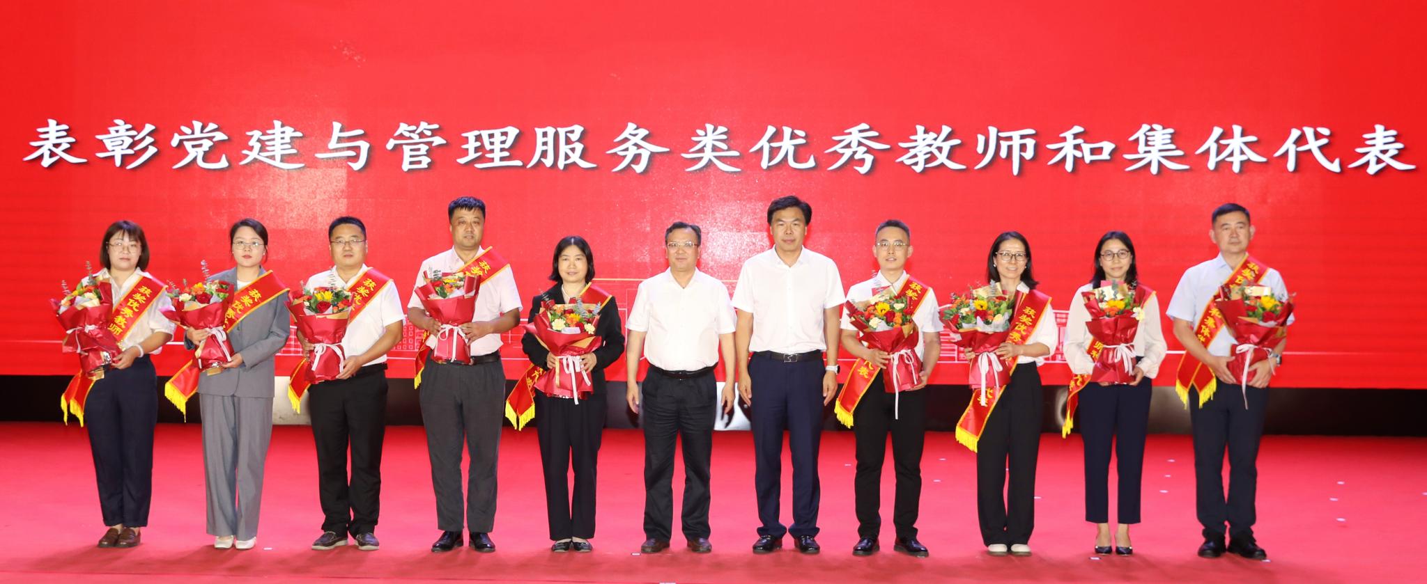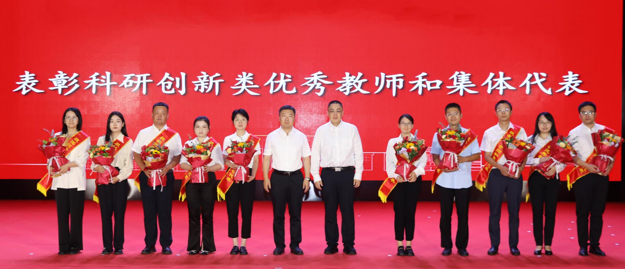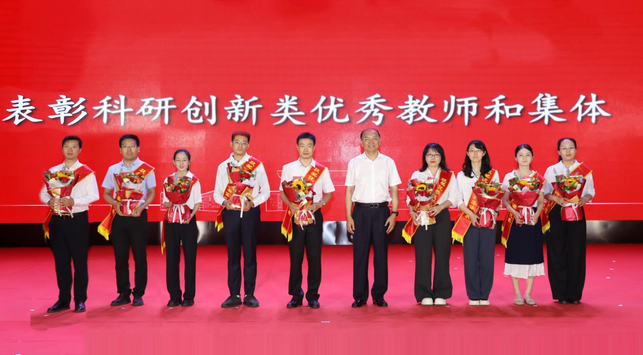 大会表彰了获省部级及以上科研创新类、教育教学类、党建与管理服务类奖项的优秀教师和集体。校领导为获奖代表颁奖。