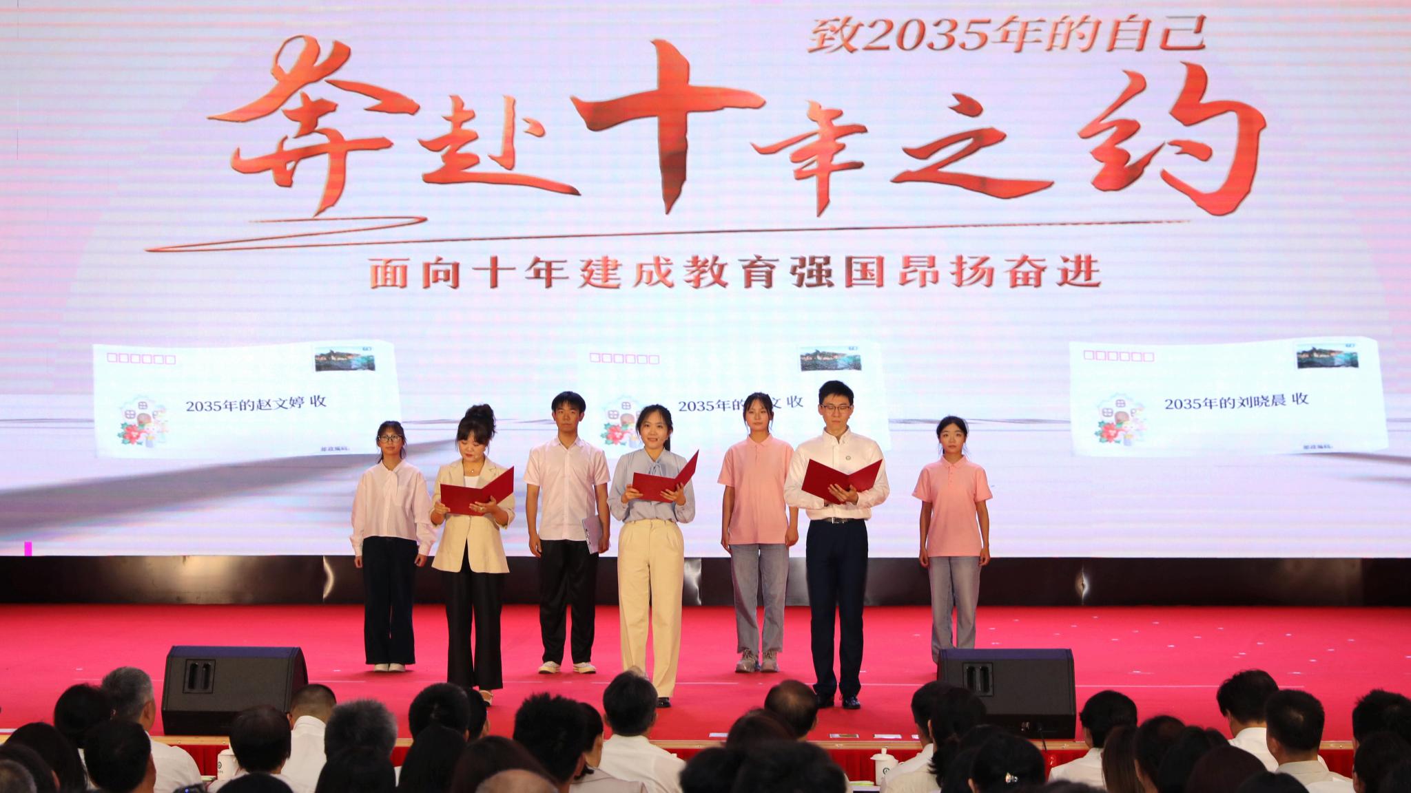 教师代表赵文婷、庄文、刘晓晨用情景朗诵《昂扬奔赴“十年之约”——北农教师写给2035的信》表达对建成教育强国的憧憬,以及大力弘扬教育家精神、以实际行动践行“躬耕教坛、强国有我”誓言,为教育强国贡献智慧和力量的信心和决心。