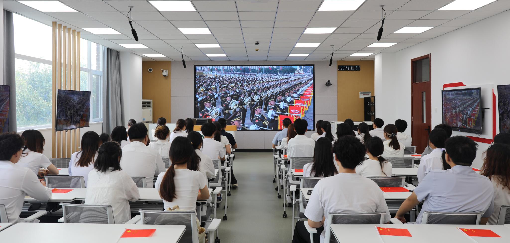 9月3日上午,纪念中国人民抗日战争暨世界反法西斯战争胜利80周年大会在北京天安门广场隆重举行。学校组织党员、干部、师生集中收听收看大会实况,认真聆听中共中央总书记、国家主席、中央军委主席习近平发表的重要讲话。
