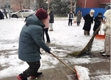 学院师生用自己的实际行动,打了一场漂亮的除雪仗,展现出了一道美丽的风景线。