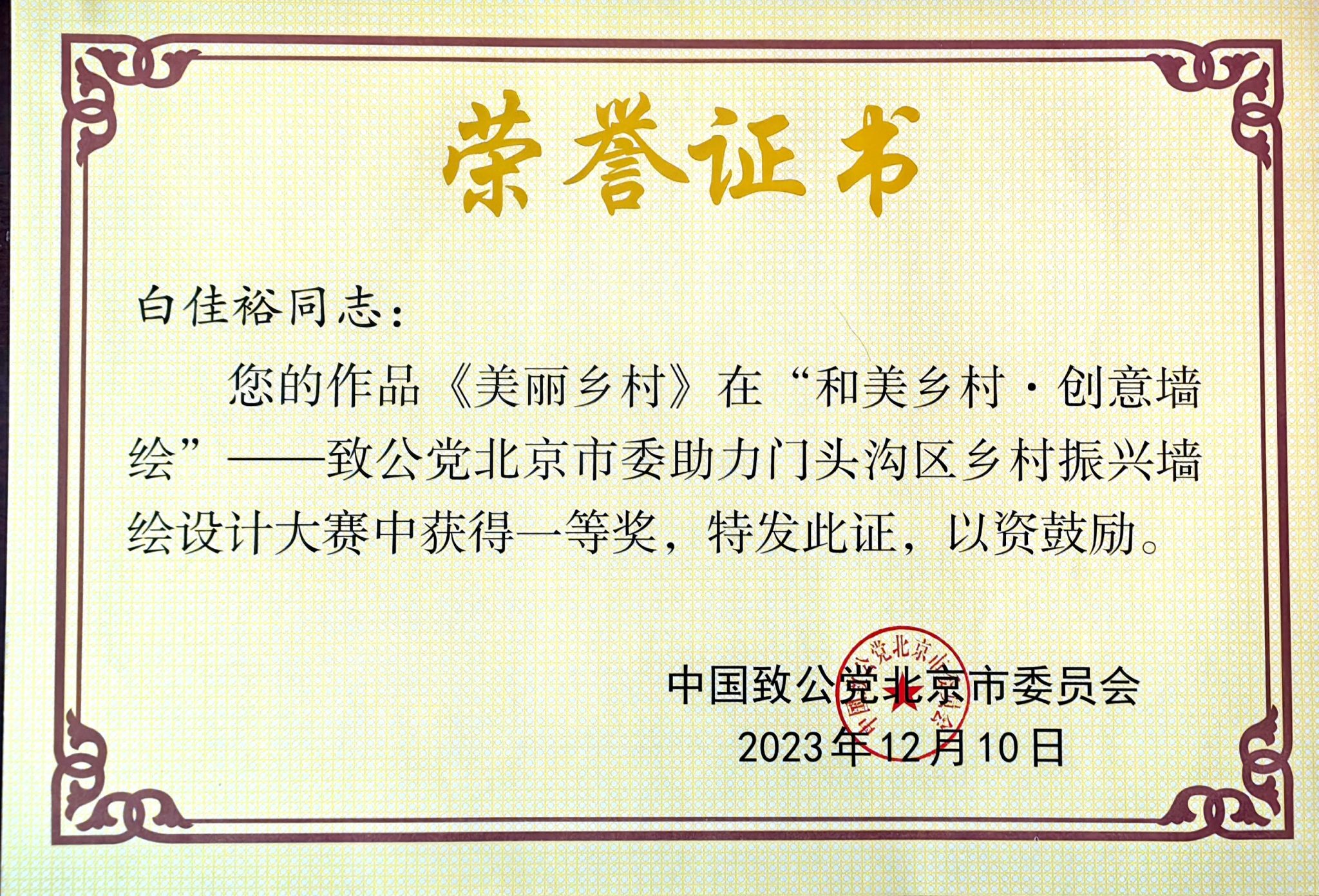 近日,文发学院学生社团会展协会成员在门头沟区斋堂镇张家村墙绘设计大赛中取得了优异成绩!
