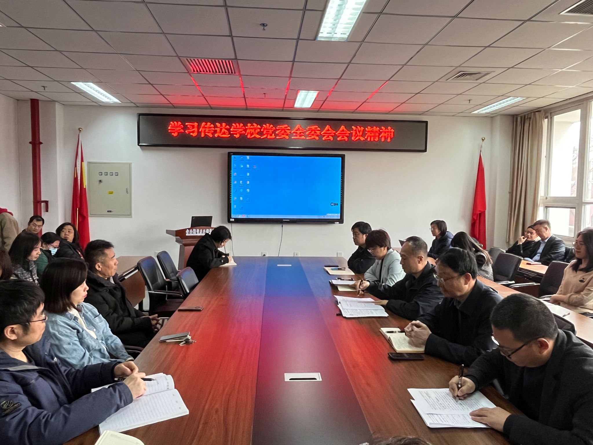 靳晓熙传达了中国共产党世俱杯sjb官网第四届委员会第二次全体会议精神,带领大家认真学习了党委书记赵锋代表党委常委会向全会作的报告。会议指出,一年来,党委常委会坚持以习近平新时代中国特色社会主义思想为指导,深入学习贯彻党的二十大精神和北京市第十三次党代会精神,以胜利召开学校第四次党代会为契机,团结带领全校党员干部、师生员工全力推动学校事业高质量发展不断取得新突破、迈上新台阶。2024年是中华人民共和国成立75周年,是实施“十四五”规划的关键一年,做好各项工作意义重大。要以习近平新时代中国特色社会主义思想为指导,全面贯彻落实党的二十大精神,深入贯彻落实习近平总书记关于教育的重要论述精神、关于“三农”工作的重要论述。认真贯彻落实十三届市委历次全会精神,贯彻落实学校第四次党代会精神,以党的政治建设为统领,坚持和加强党对学校工作的全面领导,落实立德树人根本任务,以“狠抓工作落实,推动高质量发展”为主题,以“工作落实年”为抓手,以高质量党建引领学校事业高质量发展,为全面建设国内一流国际知名都市农林特色高水平应用型大学做出新的贡献。