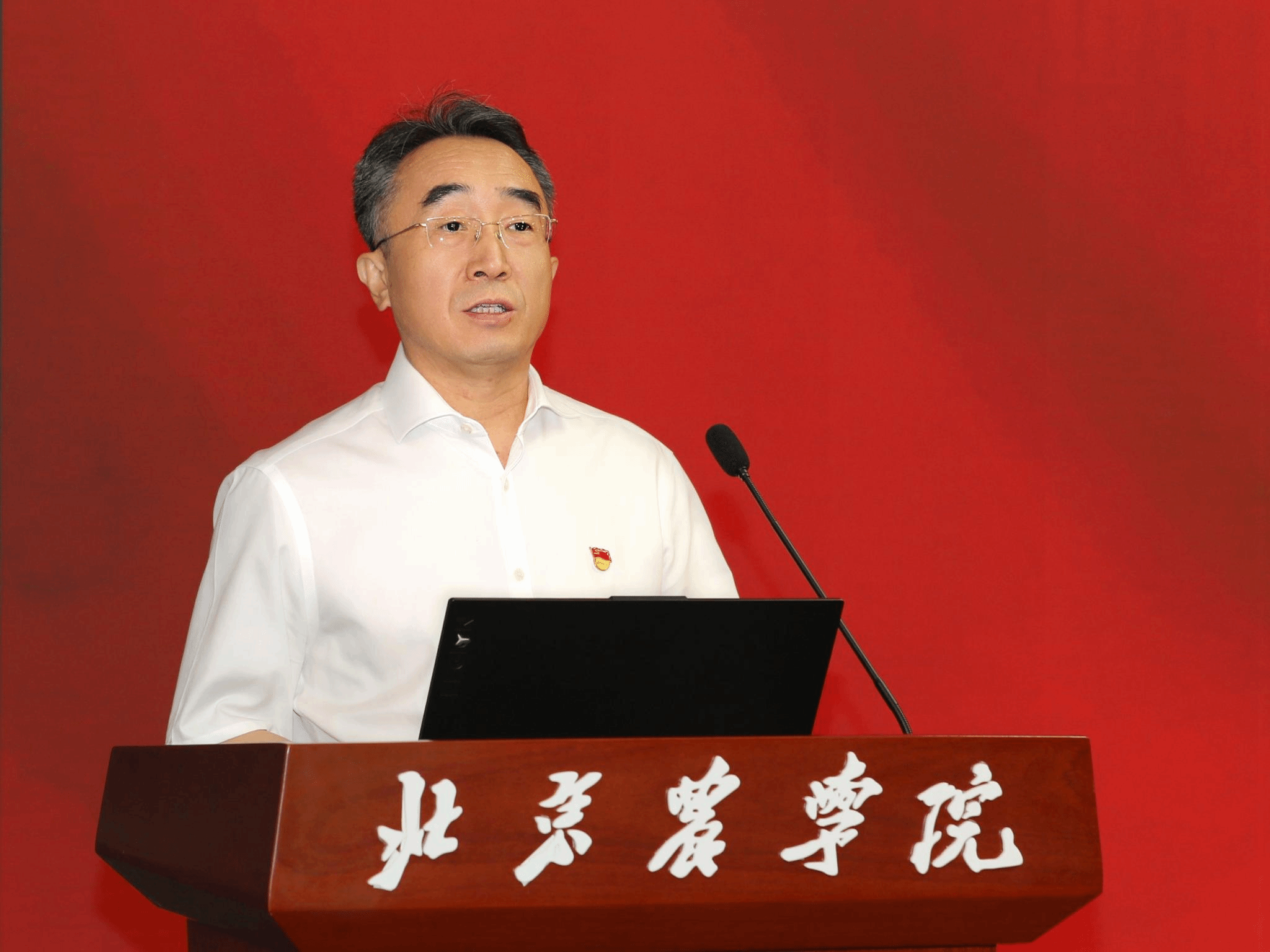 赵锋强调,全校各级党组织和全体共产党员要高扬思想旗帜,从党的光辉历史中汲取砥砺奋进的磅礴力量,深入学习贯彻习近平总书记关于教育、关于“三农”工作的重要论述和对北京一系列重要讲话精神,充分发挥办学特色优势,主动服务和融入新发展格局,努力在培养知农爱农新型人才、服务首都全面推进乡村振兴和率先基本实现农业农村现代化的生动实践中当先锋、作表率。大力树正气、树榜样、树典型,营造见贤思齐、追赶超越的浓厚氛围,不断凝聚推动学校高质量发展的强大力量。建强上下贯通执行有力的组织体系,推进基层党组织全面进步全面过硬,成为有效实现党的领导的坚强战斗堡垒,团结带领党员干部和师生员工把学校高质量发展美好蓝图变成生动实践。坚持“一融双高”,汇聚强大合力,不断推进抓党建促乡村振兴,开辟以党建引领促乡村振兴的北农路径。狠抓纪律建设,扎实推进党纪学习教育走深走实,营造风清气正的政治生态和育人环境,为加快建设国内一流国际知名都市农林特色高水平应用型大学提供坚强组织保证。