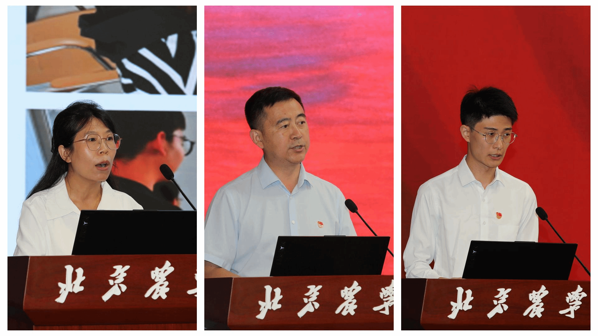 全国高校黄大年式教师团队成员、植物科学技术学院党委书记王绍辉,第四批全国党建工作样板支部、动物科学技术学院动物科学教工党支部书记李艳玲,北京高校红色“1+1”示范活动二等奖、智能科学与工程学院研究生党支部书记高胜男,第九届首都民族团结进步先进个人、食品科学与工程学院教授李德美,新发展学生党员代表、文法与城乡发展学院社会工作专业研究生战昕宇分别作交流发言,分享了党建工作好经验好做法,表示将在学校党委坚强领导下,更加有效发挥党支部战斗堡垒作用和师生党员先锋模范作用,为学校事业高质量发展以及服务新时代首都发展作出新的更大贡献。