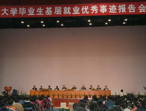 首都各高校主管校领导和学生工作负责人及来自首都20余所高校的2000多名师生聆听了李振茹等六位基层就业优秀大学生代E的报告。