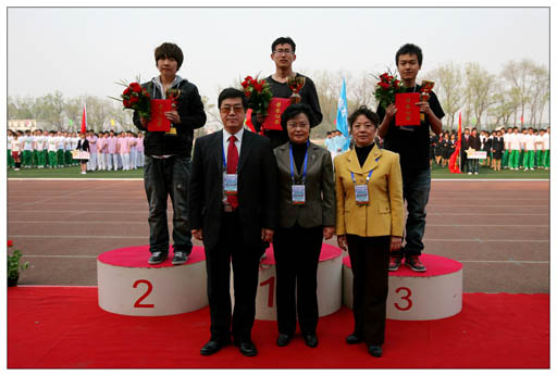 校党委副书记高喜军、副校长杜晓林、副校长姚允聪为学生组运动成绩男子团体总分前三名获奖单位颁奖。