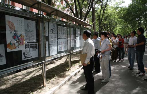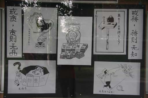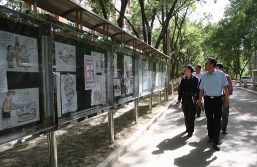 我校“反腐倡廉漫画展”开展这是党风廉政建设宣传教育月的活动内容之一。世俱杯2008年党风廉政建设工作会议暨党风廉政建设宣传教育月活动启动仪式结束后,与会人员参观了漫画展。