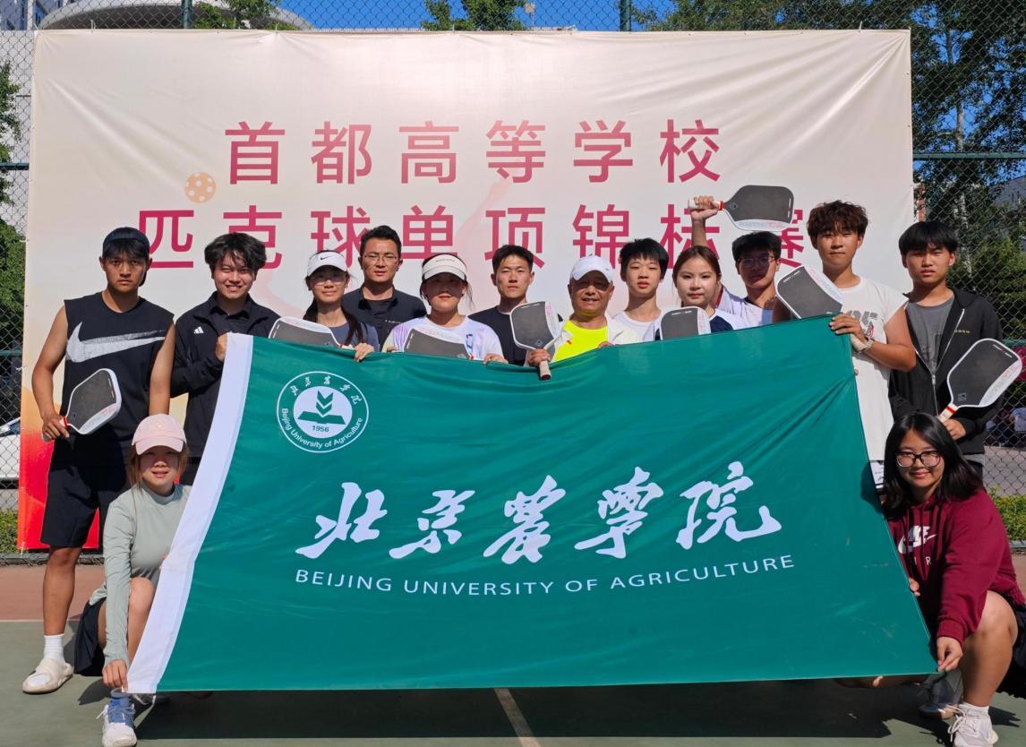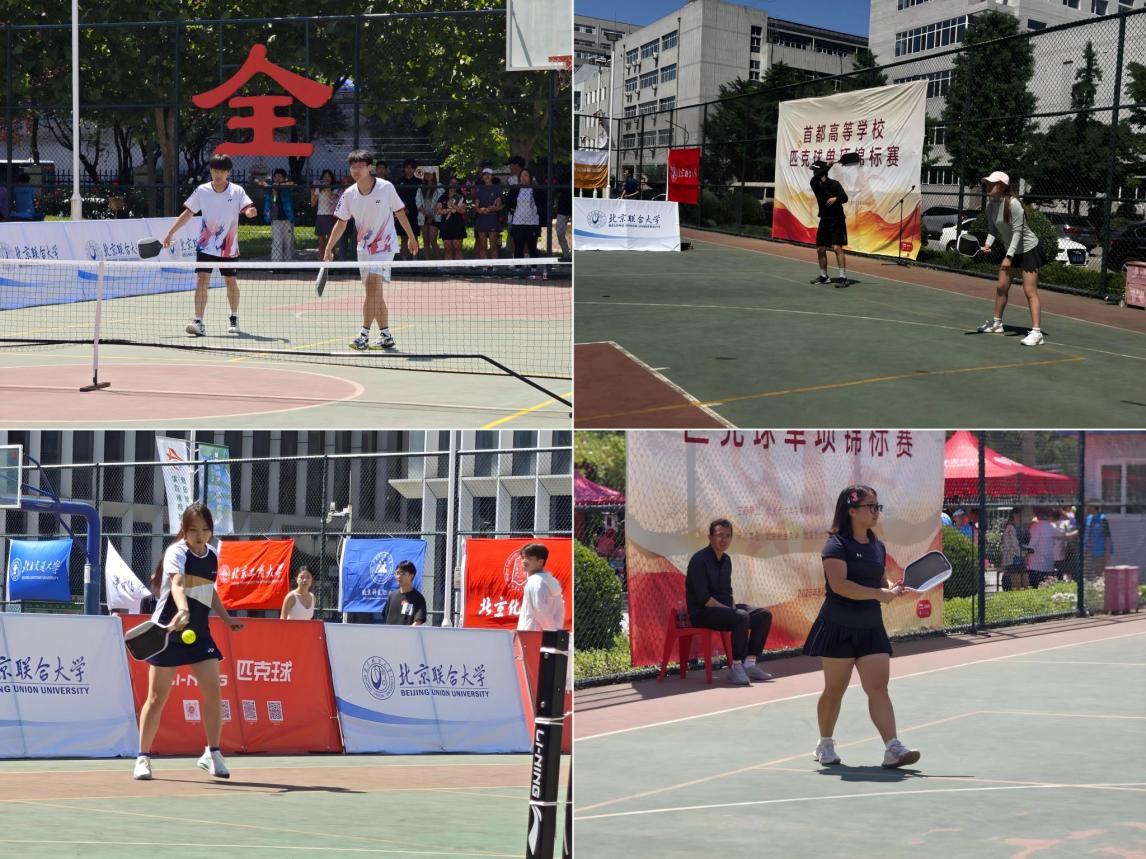 5月24日,由北京市大学生体育协会主办、北京联合大学承办、北京市大学生体育协会匹克球分会执行的首都高等学校首届匹克球单项锦标赛举行。来自27所高校的400余名队员同台竞技。在袁龙辉、王卓识、路正荣三位老师的指导下,世俱杯匹克球队国际学院樊羽佳同学、园林学院安维一荣获普通学生组女子双打亚军,生物与资源环境学院李惟先荣获普通学生组单打季军,食品科学与工程学院万欣蕊获得普通学生组单打第五名。