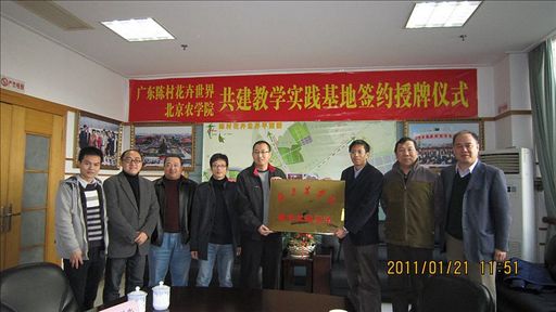 1月21日,世俱杯党委副书记高喜军、副校长杜晓林、教务处副处长沈文华在城乡发展学院党总支书记张子安、辅导员张海玲的陪同下来到城乡发展学院教学实践基地——广东陈村花卉世界,看望在这里实习的学生,并与陈村花卉世界有限公司以及台湾世华花卉科技有限公司签约挂牌,共建教学实践基地。