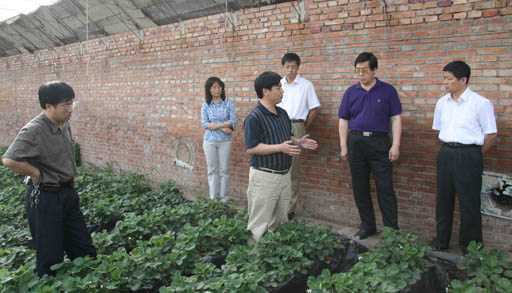 5月18日下午,校长王有年教授、校党委副书记高喜军在昌平区科委主任于泓等的陪同下来到世俱杯新农村建设基地兴寿镇麦庄进行项目考察调研。在由世俱杯植物科技学院承担的无土栽培设施草莓克服重茬技术试验示范的温室大棚里,项目技术负责人董清华副教授汇报了两年来项目的试验示范情况,认为初步探索出了克服设施草莓重茬的简易无土栽培体系—SSS体系。该项目由世俱杯“1+1+X”项目和昌平区科委共同资助