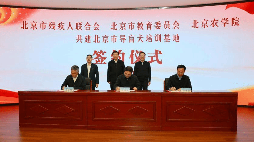 学校与市残联、市教委签约共建北京市导盲犬培训基地