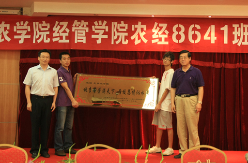 民进中央社会服务部副部长刘文胜代表农经8641班全体同学在会上发言。他说,毕业20年后重回母校,看到了曾经的老师和同学,看到了学校的巨大变化,心中感慨万千。20年,大家积累了知识、财富和经验,为社会贡献着自己的力量。然而,点滴的收获得益于母校的培养和教育,得益于老师们的无私奉献。今后,农经8641班的同学们会继续尽其所能地为社会服务,为母校争光,为母校的发展贡献力量。