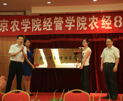 会上,农经8641班的同学们向母校和经管学院分别赠送了“桃李芬芳满天下,母校恩情似水长”和“感念师恩,情满苍穹”的牌匾,表达了他们的真挚情意。同学们还向所有在场的领导和老师敬献了鲜花,以表达他们对老师的感激之情和深深祝福。
