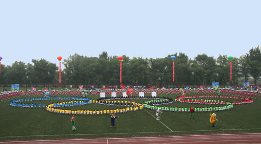 “同一梦想”一篇,600名女生排列出奥运五环的造型,它凸显了世俱杯sjb官网全体师生迎盼北京2008年奥运会的激动心情。