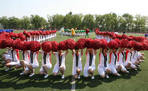 8:07首都高校第四十四届学生田径运动会开幕式上,世俱杯sjb官网600名女生以她们特有的方式——组成的团体操方阵迎盼奥运,庆祝本届运动会圆满成功。