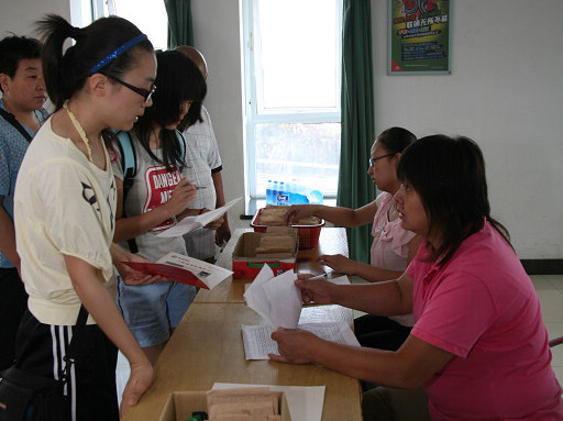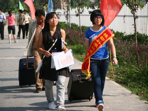 新生来到学校报到的一大亮点就是,有很多带着志愿者袖章的学哥学姐们为他们服务,指路、搬行李……作为学长、学姐,他们大家热情周到,尽显自己的一片热心。经管服务台的韩启龙同学表示,志愿者们很早就已准备就绪,等待新生到来,主服务台设立于新生报到处旁,更方便同学们问询。在那里志愿者们帮新生领路搬行李,使他们更方便地到达宿舍楼。扛着沉甸甸的行李,虽然大汗淋漓,但志愿者们没有怨言,依然热情满满。