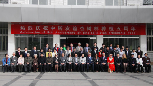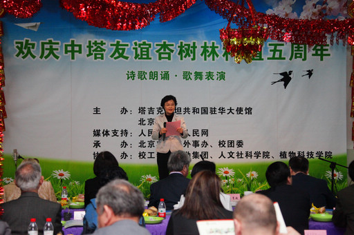 中国国务院发展研究中心欧亚研究员殷松龄、胡振华、张志明,北京市政府外事办涉外处副处长梅建军,党委副书记高东和学校有关部门负责人出席庆祝活动。参加“欢庆中塔友谊杏树林种植五周年诗朗诵及歌舞表演”的还有塔吉克斯坦大使馆的工作人员、留学生。