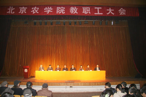 王院长最后强调,2006年是实施“十一五”规划的开局之年,是建设社会主义新农村的谋篇之年,是庆祝建校五十周年的喜庆之年。我们必须科学谋划,精心组织,有效实施,勤奋工作。要科学谋划学校“十一五”发展规划;要扎实推进京郊社会主义新农村建设,整合校内资源;要巩固学校本科教学工作水平评估成果和申硕成果,巩固保持共产党员先进性教育成果,为学校发展提供强有力的政治保障;要坚持深化改革,不断提高人才培养质量,坚持“三开”办学,提高学校的核心竞争力和学校声誉;要努力办好北京市第44届大学生田径运动会和学校建校五十周年庆典活动。