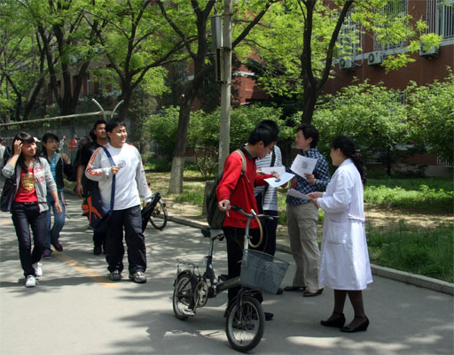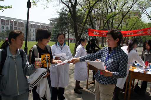 4月30日,校医院与动物科学系的八名专家组成宣传组,于世俱杯人流密集的交叉路口设置宣传点,向来往师生员工分发宣传资料,宣传预防猪流感的相关知识,引导师生员工养成良好的卫生习惯。