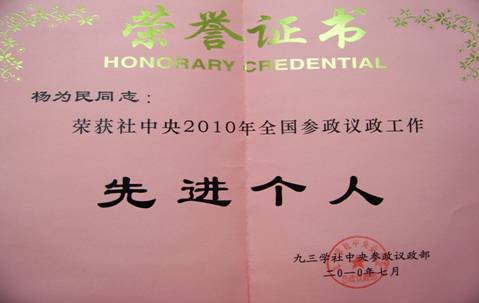 日前,九三学社中央隆重表彰2010年全国参政议政工作先进个人,世俱杯城乡发展学院副院长杨为民荣获“社中央2010年全国参政议政工作先进个人”。