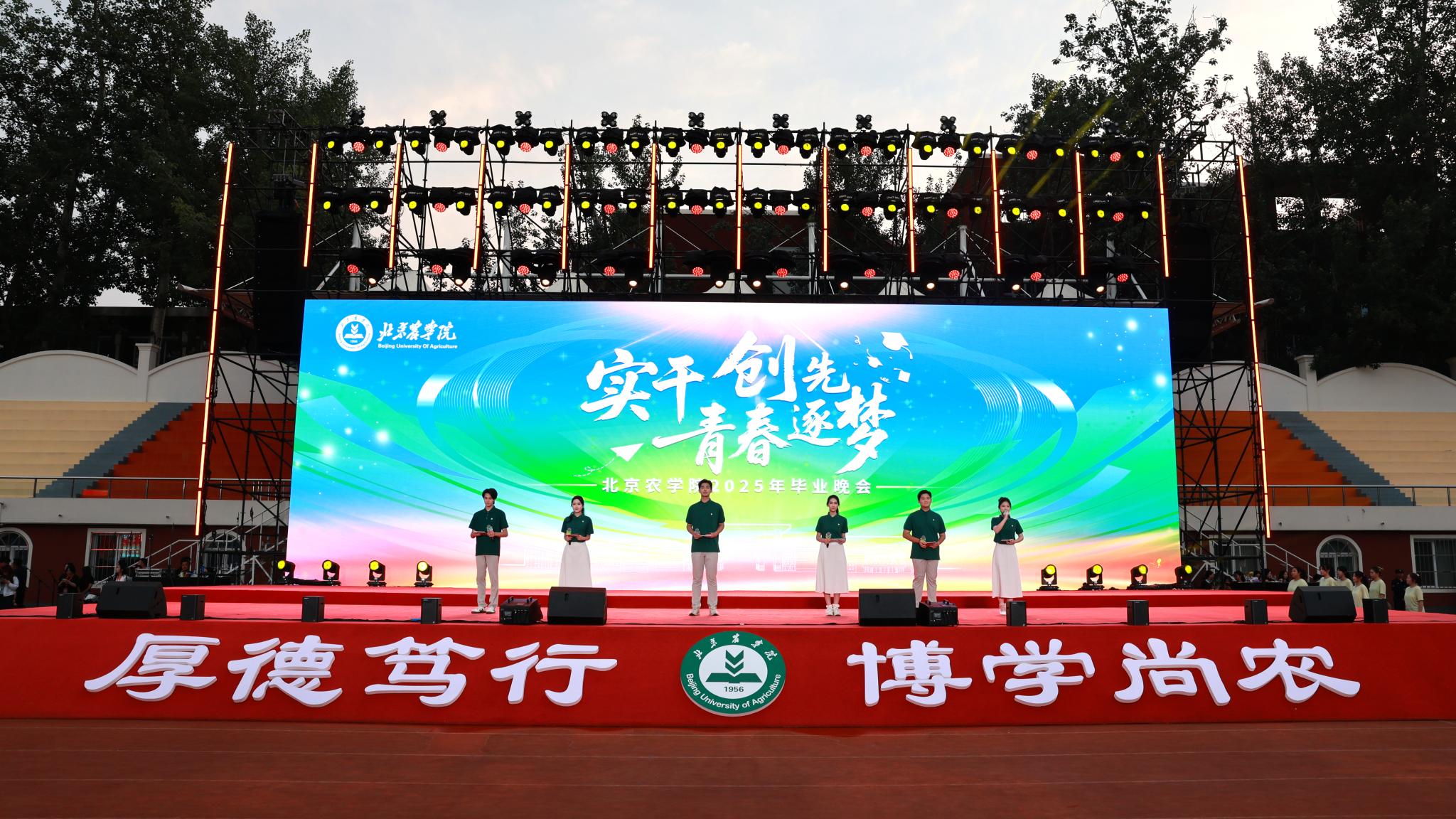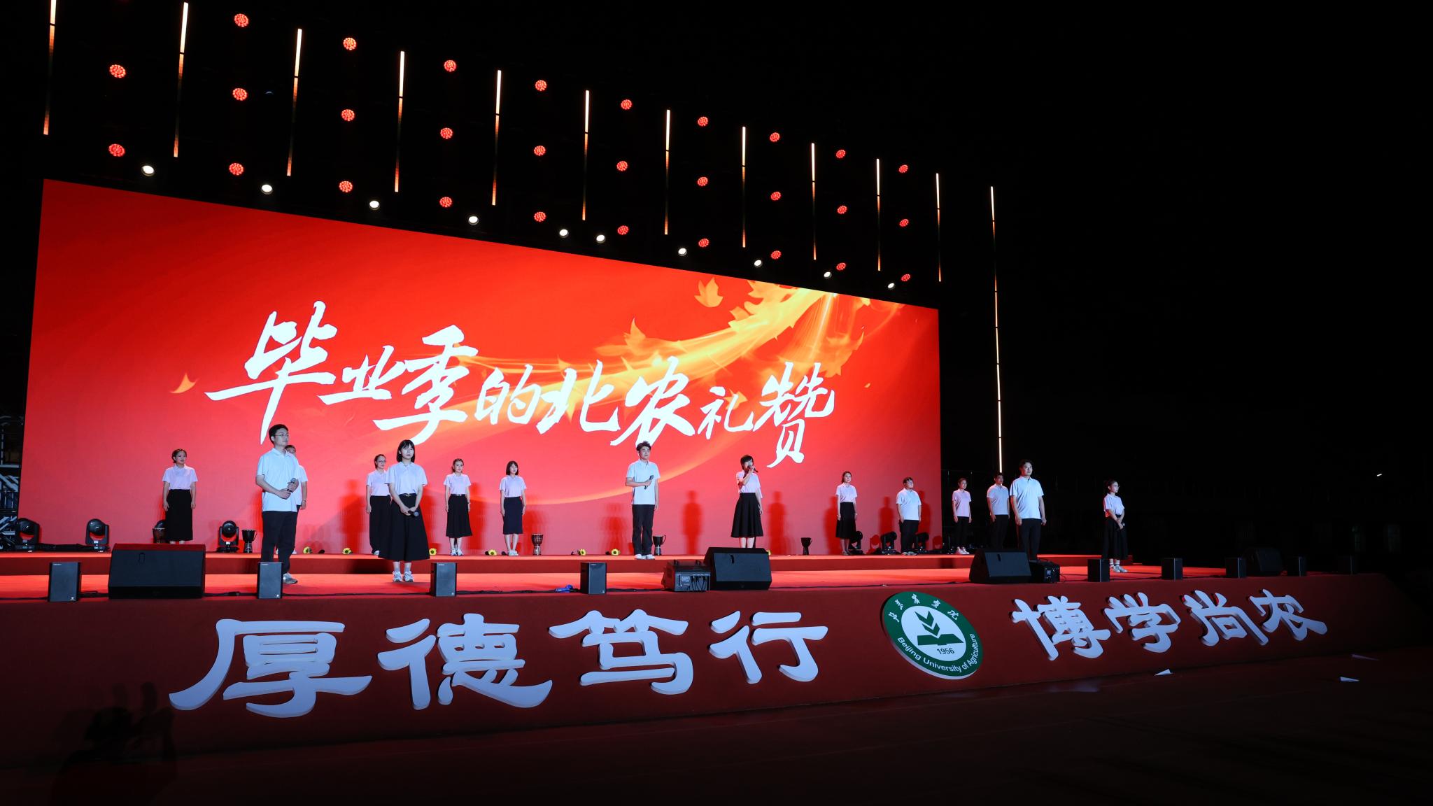 “大学四年时光浓缩在今夜。”经管学院毕业生陈岳曦凝望舞台,声音微颤,“《同桌的你》唱响时,每年暑假和同学们在山里助农时并肩看过的日出、备考期间互相鼓劲的深夜仿佛就在眼前。北农教会了我‘厚德笃行’,未来无论耕耘在何处,定不负‘厚德笃行博学尚农’之志。”
