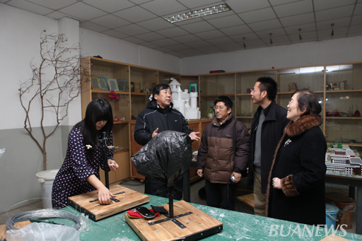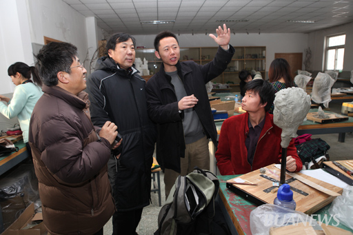 1月14日,副校长杜晓林来到位于荷花池北边的艺术模型实验室,观摩了学生雕塑实训情况。