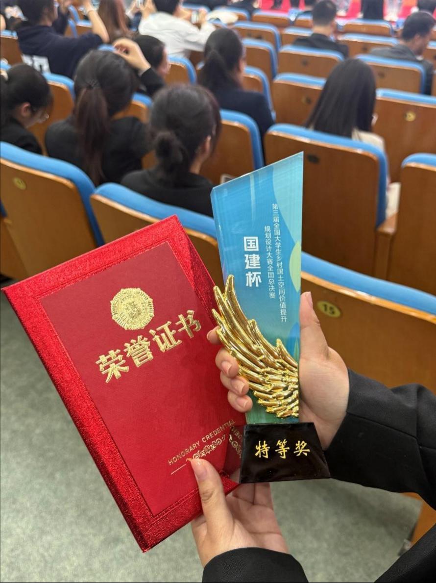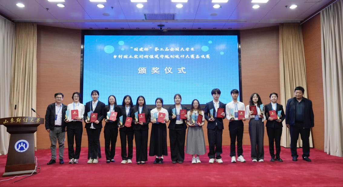近日,由中国国土经济学会、"科创中国"乡村振兴联合体、2024年度"科创中国"乡村振兴(自然资源价值保育)科技服务团主办,山东财经大学承办的“国建杯”第三届全国大学生乡村国土空间价值提升规划设计大赛(全国总决赛)在济南举办。世俱杯sjb官网生物与资源环境学院农业资源与环境专业本科生支欣、翟溢琦、胡瑾、丁骁宇、叶尔达那.提留江组成的代表队,凭借参赛作品《马栏村色好风光,红韵长存换新颜》(指导教师:刘云、石生伟、谷薇、梁琼)在全国总决赛中荣获特等奖,刘云老师荣获优秀指导老师奖。