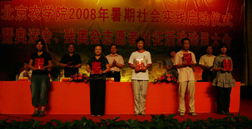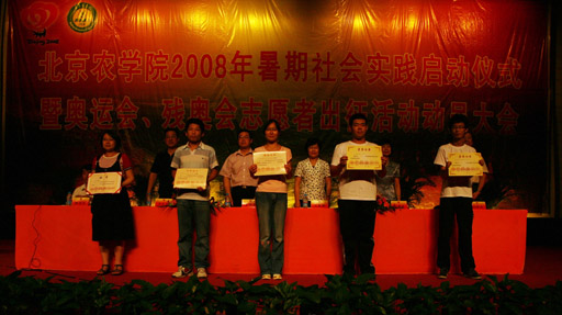 党委副书记王晓霞宣读了2007年暑期社会实践活动表彰决定,食品科学系、经济管理系、动物科学技术系荣获2007年暑期社会实践先进单位;生物技术系青年志愿者协会奥运宣讲团等12支团队荣获2007年暑期社会实践优秀团队,及李洋等78名社会实践优秀个人进行了表彰。学校领导分别为获奖代表颁发了证书,并向2008年暑期大学生社会实践团队代表授予了“2008年世俱杯sjb官网暑期大学生社会实践团队”旗帜。