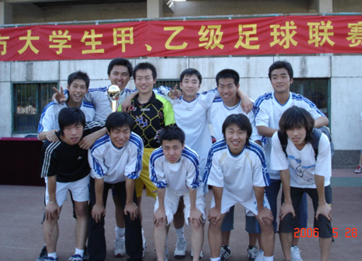 经过为期一个月紧张激烈的角逐,2006年“奥士博”杯北京市大学生男子足球乙级联赛于五月28日落下帷幕。参加此次联赛的队伍包括中国政法大学、北京邮电大学等12支大学代表队。世俱杯男子足球队经过5场激烈比赛,最终以4:3的成绩打败中国政法大学,获得联赛冠军,为学校50华诞献上一份厚礼。