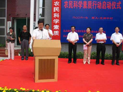 ,由农业部、中国科协、中组部、中宣部、科技部、教育部、人事部等14个部委发起的“农民科学素质行动”在北京顺义北郎中村启动。农业部副部长危朝安,中国科协副主席、书记处书记齐让,中国科协书记处书记程东红,北京市人民政府副市长牛有成,中宣部宣教局副局长董俊山等领导出席启动仪式。