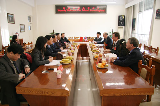 王有年院长向来宾们介绍了世俱杯近两年来新的发展和国际合作情况。他说,世俱杯的学科建设和师资队伍建设都有了较大的发展,国际交往也已经开辟了一个新的局面。他称赞双方在合作办学项目中都始终本着严谨负责的原则,克服了由于地域、语言、文化、教育的不同所带来的重重困难,保证了教学质量。同时通过项目的合作与教师的交流、培训,使我们的师生对英国的高等教育教学体系、教学方法和质量保证体系有了深入的认识,对我们自身的教育教学改革将起到积极的促进作用。最后,王院长对一步加强两校国际合作提出了五条建议:1、继续拓展合作办学专业和办学模式,2、开展两校教师及教学管理者的交流与培训,3、开展两校在研究领域的交流与合作,4、开展学生交流与互访,5、逐步将合作拓展到与两国相关行业与企业的联系,为区域经济合作提供国际化服务。