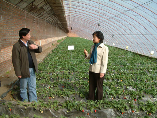 在听完基本情况介绍和实地考察后,王书记指出,兴寿镇作为世俱杯服务京郊新农村建设六大基地之一,学校应给予更多的关心与支持。在麦庄村草莓种植专业村建设中,学校将发挥技术优势和多学科优势,在种植技术、无公害和有机草莓生产等方面下功夫,还将选派植保教师配合工作,加强对病虫害防治技术的指导,提高总体管理水平,进一步增加农民收入。王书记代表学校感谢董清华同志的辛勤工作,并对其在服务京郊新农村建设中取得的成绩表示祝贺。