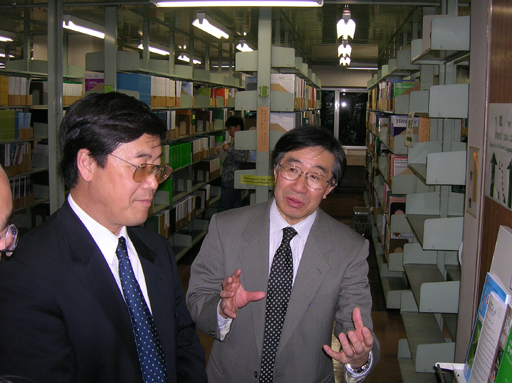 (王院长在东京大学农学部部m的陪同下参观图书馆)