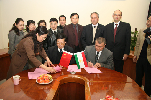 为了进一步加深两校的合作和交流,院长王有年教授与塔吉克斯坦农业大学校长萨托洛夫教授还于30日下午代表两校,在教B209签署了友好合作协议,副院长杜晓林、外事办及有关同志出席了会议。