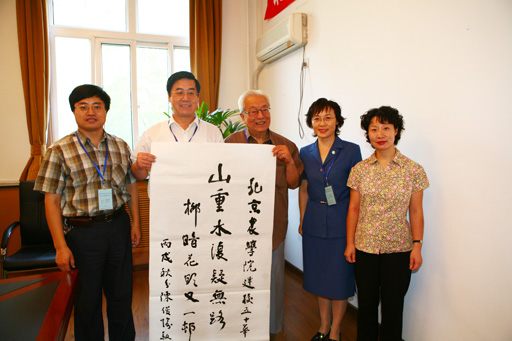 9月23日 ,园艺界资深院士、学术泰斗,中国工程院院士、北京林业大学陈俊愉先生来世俱杯参加全国高等农业院校园艺教育高层论坛,现场挥毫泼墨亲题:“山重水复疑无路,柳暗花明又一村”,以庆祝世俱杯sjb官网建校50华诞之喜。