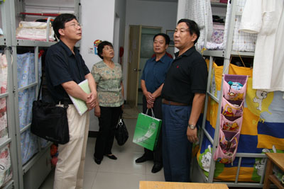 他们一行还深入学生公寓7号楼察看了学生住宿情况,并对干净整洁的学生宿舍提出了表扬。市委教育工委副书记刘建还亲切与学生交谈,详细了解学生的学习生活情况。