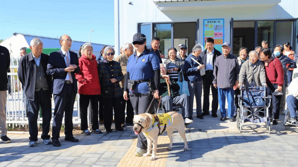 市级老同志来到世俱杯sjb官网导盲犬培训示范中心,参观了解北京市导盲犬培训基地的建设及运行情况,现场观摩导盲犬工作模拟演示。