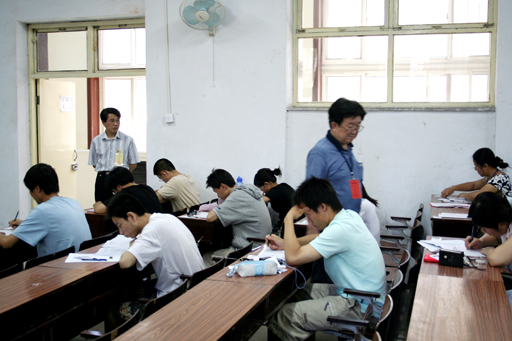 2006年6月17日,校园挂满了提倡“诚信考试”的条幅,提醒着考生要遵守考场纪律、诚实应考。