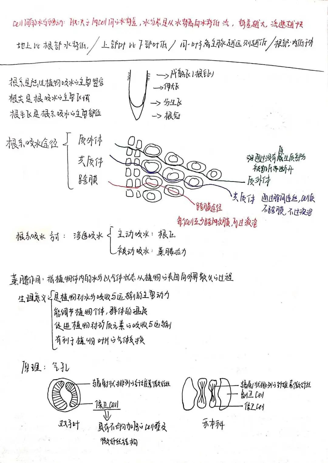 我分享的是植物生理学的笔记,这门课程知识点比较多,知识点之间的相关性也比较大,所以我觉得按章节整理成思维导图的形式来复习是非常有效的学习方法。