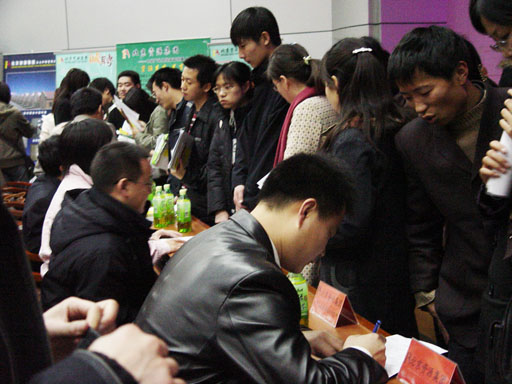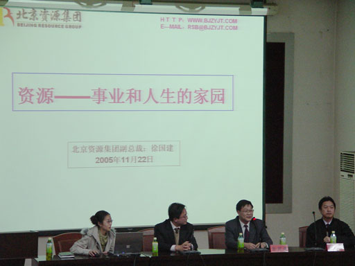招聘会上,北京资源集团副总裁徐国建先生率领集团行政总监及集团旗下六大公司的经理们亲自来到招聘现场纳贤。徐国建副总裁发表了《资源――事业和人生的家园》的演讲,通过集团简介、企业发展历程、项目荣誉、发展规划、人才需求、员工培训、企业文化等十个方面向现场的同学们展示了一个农业高科技企业集团公司的形象。世俱杯200余名毕业生聆听了演讲,现场气氛热烈,报告厅内座无虚席,过道上也站满了同学。演讲结束后,徐国建副总裁还就薪金待遇、员工培训、岗位要求、技术研发等问题回答了现场同学的提问。