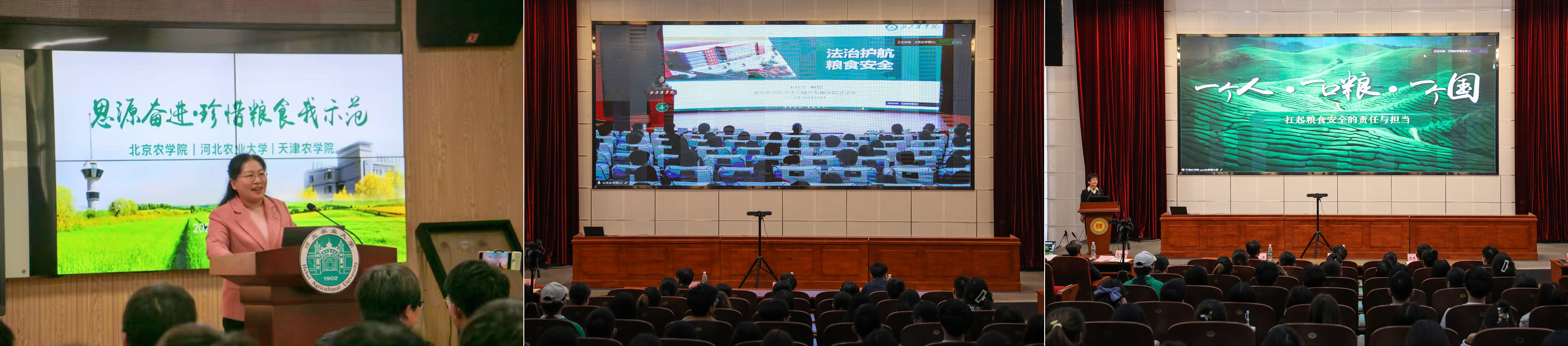 全国模范教师、河北农业大学马克思主义学院教授李亚青,北京市法学会农村法治研究会秘书长、世俱杯sjb官网文法与城乡发展学院法学系系主任宋桂兰教授,教育部手拉手集体备课中心特聘指导教师、天津农学院思政研究中心主任李月玲教授分别为三校师生带来了深入浅出的节约粮食主题思政微课。