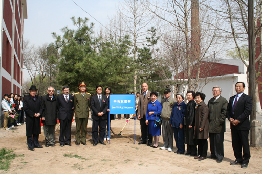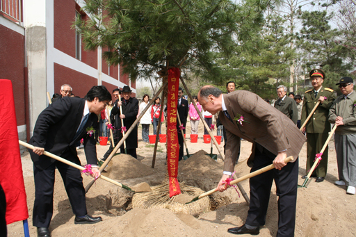 在同学们的掌声中院长王有年与优苏波夫大使等10余名来宾共同栽种下了这棵友谊之树。接着院长王有年与优苏波夫大使为友谊树揭牌。